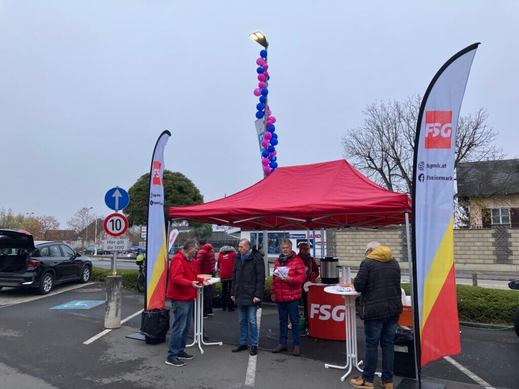 Bei angenehmem Wetter startete unser Team am 15. November in Bad Radkersburg, am Parkplatz der SOS. Viele Besuchern:innen wurden über die derzeit stattfindenden KV-Verhandlungen und über andere wichtige gewerkschaftliche Themen informiert.